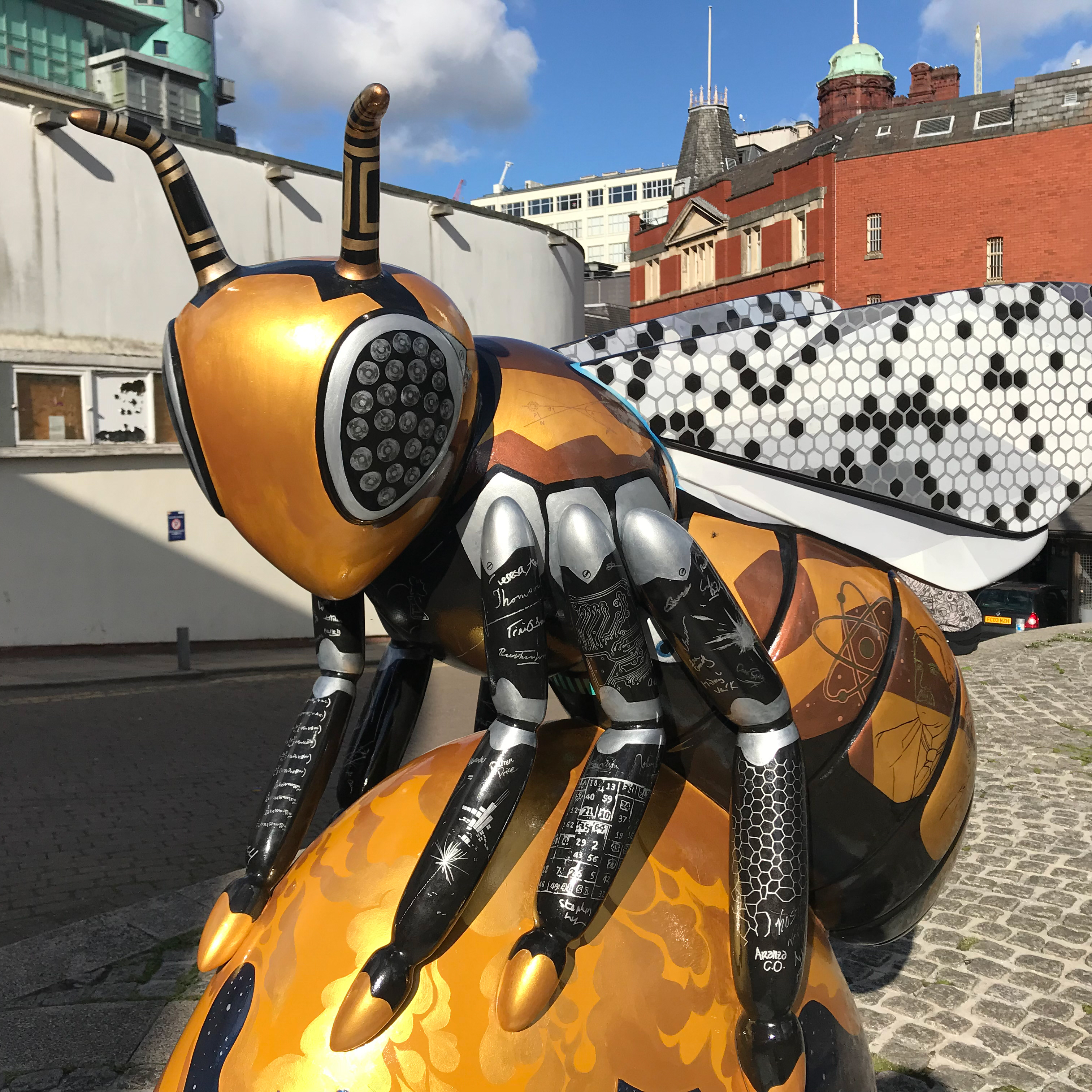 Inspired by space exploration, the Space Ape proudly wears the iconic ‘ACES’ space suit as worn by those who flew in the 135 Space Shuttle missions spanning from 1981-2011. The shuttle helped deliver many important payloads throughout the years including components of the International Space Station and the Hubble Space Telescope - both of which are still operational today and contribute to widening our understanding of the universe. Space Ape was located at the Trinity Showgrounds meaning that he got to hang out with the stars at Weekender Festival and even got signed by Jax Jones and Lewis Capaldi! The sculpture was sold at auction raising £17,000 for charity.